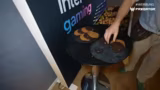 01:45:12Nachdem der Regen aufgehört hat, bewegen sich die Teilnehmer weiter durch die Arena. Sie besuchen verschiedene Bereiche, darunter einen Airbrush-Stand und die Influencer-Lounge von Intel. Hier wird das Angebot an kostenlosen Snacks wie Mini-Pizzas und Sandwiches gelobt. Auch der Weg zu den Zuschauerbereichen und die Organisation der Veranstaltung werden als positiv wahrgenommen.