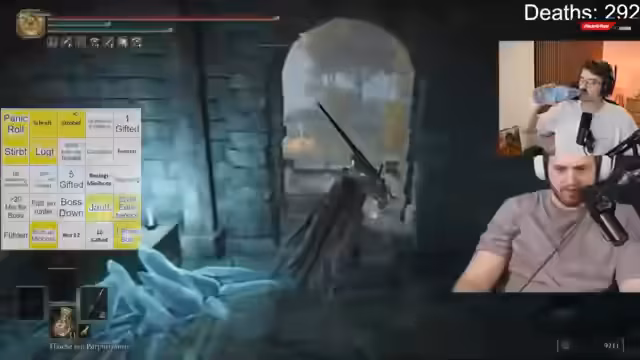 08:51:22Der Streamer findet Larventränen und weitere Schummelgegenstände. Er findet, dass jemand den Fire Giant machen sollte. Er will ein 15-Minuten-Bingo abschließen und sich danach verabschieden. Der Streamer fragt sich, ob überhaupt Leute da sein werden, wenn er morgen um 9 Uhr live geht. Er verläuft sich ständig und wünscht sich Pfeile im Boden, die ihm den Weg weisen. Der Streamer gibt dem Spiel die Schuld für seine Orientierungslosigkeit. Er findet, dass der aktuelle Bereich extrem verwinkelt ist und hasst ihn. Der Streamer war noch nicht im Brunnen unter der Stadt. Er findet einen unendlichen Spawner und bezeichnet ihn als Seelenfarm. Der Streamer kann sich nicht mehr bewegen und findet das geil. Er ist seit zweieinhalb Stunden in irgendeiner Nebenquest, der Nebenquest, der Nebenquest gefangen. Der Streamer ist sauer, weil er den Fire Giant dodgen wollte. Er bittet um eine kurze Ziel-DA, wo er eigentlich hin muss. Der Streamer ist sauer und findet Elden Ring zu groß. Er stirbt und verliert Tränke. Der Streamer findet eine Peitsche und fragt sich, wer die geschummelt hat. Er findet den Mund von Noxtella, der die Anzahl der Speicherplätze erhöht. Der Streamer ist mehr angepisst als auf einen Wurmwichser, der ihn immer instant gekillt hat. Er ist wieder falsch und tritt nicht nochmal nach. Der Streamer würde gerne auf die Questreihe von der Zauberin aufmerksam machen, die er gerade macht. Er findet es brutal, dass es 35 Torbögen gibt und nur einer offen ist. Der Streamer versteht nicht, wie man das als normale Person finden soll. Er findet es cool, sich in der Burg zu verlaufen, will aber eigentlich die Quest machen. Der Streamer ist wieder falsch und muss runter.