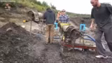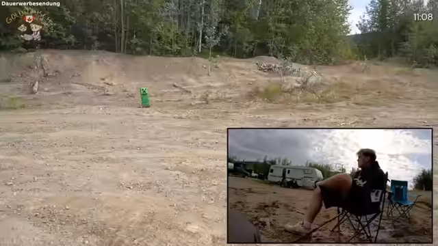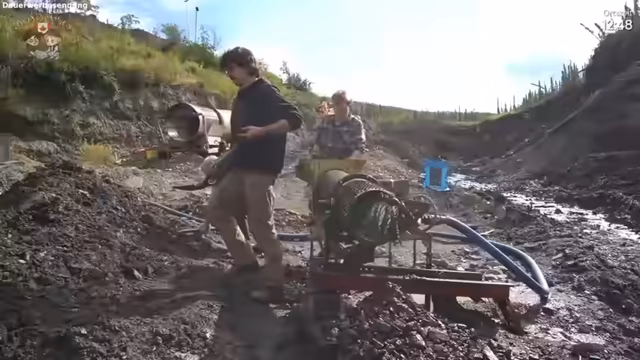 08:41:07Ein lautes Knacken aus dem Berg versetzt die Streamer in Unruhe, da sie befürchten, dass der Hang abrutschen und sie begraben könnte. Parallel dazu stellt der lokale Minenbetreiber sein Equipment vor und bietet an, den Goldkonzentrat in einem separaten Prozess zu waschen, damit das Stream-Team den Vorgang beobachten kann. Er erwähnt auch einen Bergbauinspektor, der Wasserproben nimmt und erklärt, dass Goldpreise gestiegen sind, was alte Minen wieder rentabel macht.