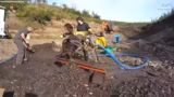 Beginn der Goldsuche und Vorführung der Waschmaschine