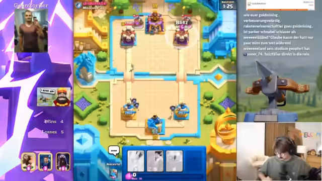 01:04:47Der Streamer beschäftigt sich intensiv mit dem Spiel Clash Royale und analysiert seine Spielzüge. Er diskutiert taktische Entscheidungen wie den Einsatz von Pfeilen gegen Bogies, das Bauen von Pushs und die Handhabung spezieller Karten wie Feuerbälle und Evo-Muskete. Dabei zeigt er Frustration über verlorene Spiele und ungeschickte Züge, reflektiert aber auch über Verbesserungsmöglichkeiten und die Bedeutung von Geduld im Spiel. Er betont die Wichtigkeit von Erfahrung und stetigem Lernen im Umgang mit verschiedenen Decks und Gegnern.