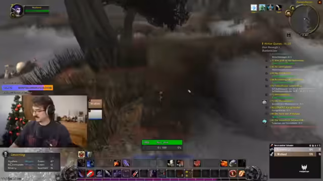 01:40:19Der Streamer taucht tief in technische Aspekte des Gameplays ein. Er erklärt die Nutzung von Nameplates zur Aggro-Kontrolle und wie man gezielt Zielwechsel vornimmt, um die Aufmerksamkeit der Gegner zurückzugewinnen. Er zeigt, wie man in den Quest-Einstellungen das nervige 'verfügbare Quests von Gegenständen'-Feature deaktiviert. Zudem werden Probleme mit der Quest 'Der Turm von Attallax' und dem Sammeln bestimmter Pilze behandelt, bei denen der Streamer von Chat-Einmischungen verärgert ist und seine eigene Vorgehensweise verteidigt.