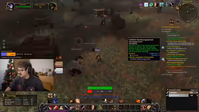 01:25:12Der Streamer optimiert seine Spielstrategie, indem er Weak Auras und Makros einrichtet. Er erklärt die Verwendung von Rüstungszerreißen versus Verwunden und wie man mit Cooldowns umgeht. Diskussionen mit dem Chat drehen sich um effizientes Grinding, die Bedeutung von Tank-Qualitäten und die Anpassung von Interface-Einstellungen für bessere Sichtbarkeit von Gegner-Aggression.