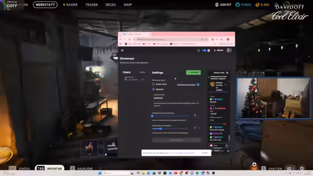 04:07:23Der Stream beginnt mit der Ankündigung einer Partnerschaft mit Davidoff für eine interaktive Schatzsuche. Ein digitaler Code muss durch das Lösen von drei Quizfragen erraten werden, um eine physische Schatztruhe zu öffnen. Gleichzeitig kündigt der Streamer an, dass er im Spiel gelegenen Loot in reale Preise für die Community umwandeln und verlosen wird. Dieser angekündigte Loot-Transfer von Ingame-Gegenständen zu realem Gut stellt den ersten großen Content-Punkt des Streams dar.
