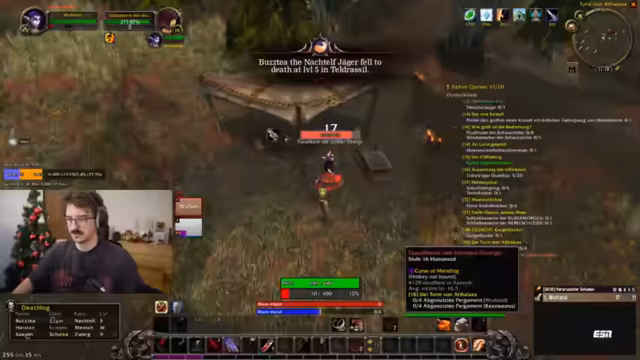 00:05:40Der Streamer analysiert Spielstrategien und kritisiert Fehler von Mitspielern wie 'Bleach' und 'Chef Strobl'. 'Bleach' stirbt wiederholt auf Level 20, während 'Strobl' für Schummeln und unüberlegtes Aggro-Management gerügt wird. Es wird über Buffs, Debuffs und das Vermeiden von Risiken diskutiert, etwa durch korrektes Escape-Verhalten. Der Chat empfiehlt vorsichtiges Leveln und das Meiden von Eliten ohne Gruppe. Ziel ist es, durch Lernen aus Fehlern effizienter voranzukommen.