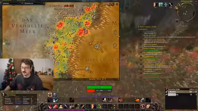 00:09:58Der Streamer skizziert seine Level-Strategie und plant, wichtige Quests abzuschließen und den Flugpunkt für Westfall zu sichern, um dort zügig weiterzuleveln. Es gibt eine fixe Absprache mit einem anderen Spieler namens Bleach für einen gemeinsamen Westfall-Run am Folgetag. Des Weiteren wird eine Gruppen-Pläne für Deadmines-Dungeon am heutigen Abend erwähnt. Er teilt sich das Gruppengeschehen mit seinem Priester, der einen Warrior begleitet und sich auf das Leveln konzentriert. Die teuren Waffen-Upgrades für den Warrior werden als Problem erwähnt.