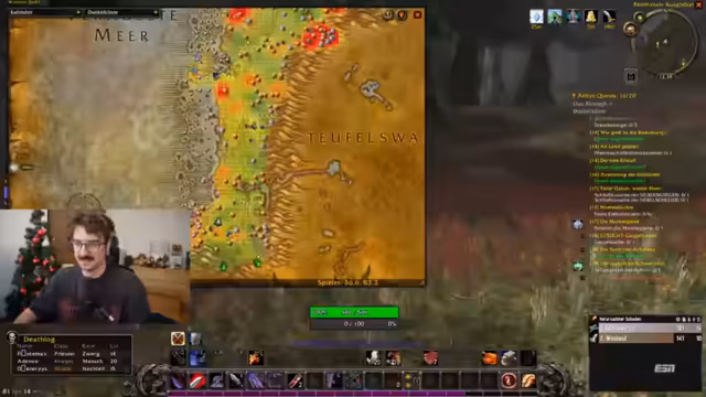 02:38:22Fokus liegt auf sammelbasierten Quests (z.B. Moloch-Sammlungen, Schildkröten-Quests) und der Optimierung des Inventars. Der Streamer plant, Level 18 bis 20 für den Endboss zu erreichen, und kritisiert dabei nervige Mechaniken. Diskussionen über Professionen wie Kochkunst und das Sammeln von Ressourcen (Öl, Kräuter) für spätere Nutzen zeigen strategische Planung.