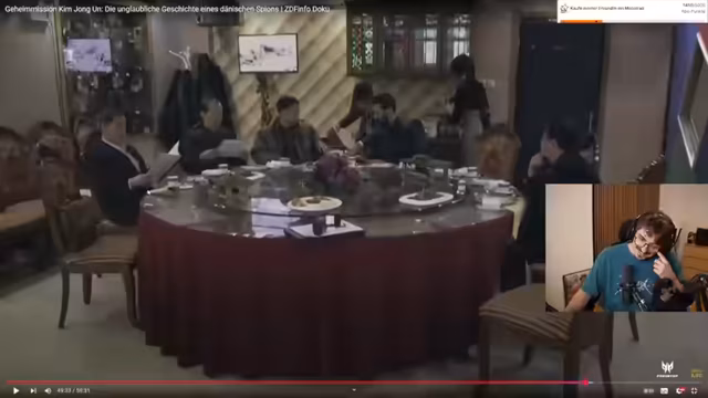 05:47:05In Nordkorea angekommen, führt eine Abweichung vom Sightseeing-Plan zu einem Treffen in einem geheimen, luxuriösen Konferenzraum in einem heruntergekommenen Gebäude. Dort treffen Ulrich und 'Mr. James' auf hochrangige nordkoreanische Waffenhändler und Geheimdienstler. Ihnen wird ein detaillierter Katalog von Waffensystemen präsentiert, darunter Raketen mit einer Reichweite von 1.350 Kilometer. Der Handel wird mit einem Vertrag über 14 Millionen Dollar für 'Skat-Raketen' besiegelt, während die nordkoreanischen Partner im Glauben gehalten werden, es handele sich um eine legitime Geschäftsabsprache.