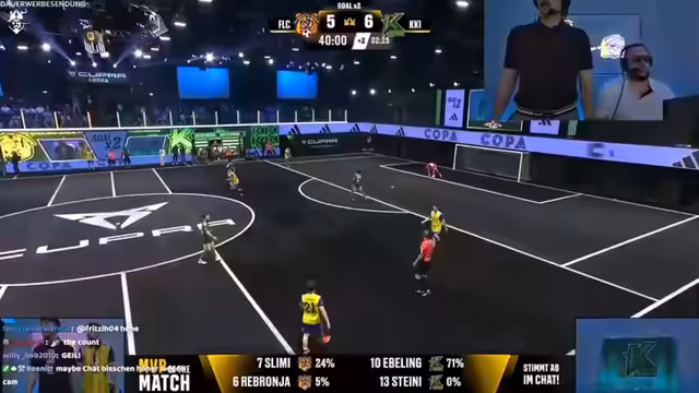 00:23:07Der Streamer lobt seine Mordsmänner für die schnelle Erstellung eines Bildes, das das gegnerische Team anpisst. Erwähnt wird die Live 5G-Cam von Vodafone, die am Kopf des Schiedsrichters befestigt ist. Es wird diskutiert, wer den nächsten Elfmeter schießen soll, wobei der Name Niki fällt. Der Streamer betont die Einheit des Teams, ausgenommen das gegnerische Team. Er entschuldigt sich bei Miguel für die Zusammenarbeit mit einem schlechten Team. Der Druck auf den Elfmeterschützen Niki wird thematisiert und überlegt, ob er spielen kann. Es wird spekuliert, wie Niki den Elfmeter schießen soll und der Streamer gibt Ratschläge aus eigener Erfahrung. Der Streamer feuert Niki an und betont, wie wichtig es ist, dass er das Tor trifft. Es wird über die Stärken und Schwächen der Spieler diskutiert und auf frühere Boxkämpfe Bezug genommen.