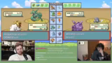 03:50:48Der Streamer und Trymacs starten den Kampf gegen die Arenaleiterin. Während Trymacs mit seinem starken Rayquaza souverän den ersten Gegner besiegt, gerät der Streamer in Bedrängnis. Sein Pokémon werden in schneller Folge stark geschwächt oder ausgeschaltet. Er muss taktisch wechseln und nutzt Items wie Tränke und Effekt-Attacken wie Egelsamen, um den Kampf zu überstehen und seine Pokémon am Leben zu erhalten.