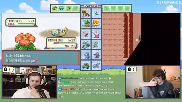 03:18:21Nach dem ersten Kampf befürchtet der Streamer, dass seine Pokémon für die Arena zu schwach sind. Er entscheidet sich jedoch, Trymacs Vorschlag, zwei Stunden zu leveln, abzulehnen, da dies keinen Spaß macht. Stattdessen möchte er versuchen, die Arena mit seinem aktuellen Team zu meistern. Das Team besteht aus einem Celebi und mehreren Pflanzen-Pokémon, von denen er das Celebi aufgrund von Levelunterschieden nicht uneingeschränkt einsetzen kann. Er sucht nach einer Möglichkeit, seine Pokémon zu stärken.