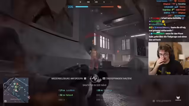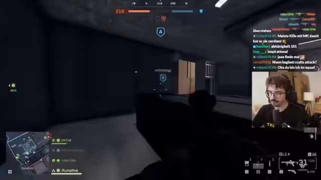 03:09:46Im weiteren Verlauf der Battlefield-Runde experimentiert der Streamer mit verschiedenen Waffenaufsätzen. Er rüstet seine Waffe mit einem Schalldämpfer und einem großen Magazin aus, was die Feuerkraft erhöht. Seine Taktik ist aggressiv und er versucht, Gegner im Nahkampf auszuschalten. Er kritisiert das Gameplay als unzufriedenstellend, da Gegner oft auf Distanz kampieren und keine Nahkämpfe zustande kommen, was das Erlebnis frustrierend macht.