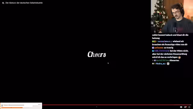 00:03:25Der Stream startet mit einer Begrüßung des Chats und einem kurzen Update zum Zustand des Streamers, der sich angeschlagen fühlt. Es werden Pläne für den Stream vorgestellt, darunter YouTube Reactions und das Ansehen einer Folge von Frank Rosin. Der Streamer erwähnt seine Teilnahme an den Stream Awards und freut sich darauf, viele coole Leute zu treffen. Er geht auch auf die Startzeit der Pre-Show ein und äußert die Hoffnung, einen der witzigsten Clips des Jahres zu gewinnen. Es wird kurz über die Auswirkungen von Solarparks auf Vögel und Insekten gesprochen, bevor der Fokus auf das Hauptthema des Tages gelegt wird: Eine YouTube Reaction zu einem Video über den Niedergang der deutschen Solarindustrie. Der Streamer betont die Relevanz des Themas und verspricht interessante Einblicke.