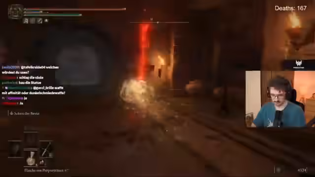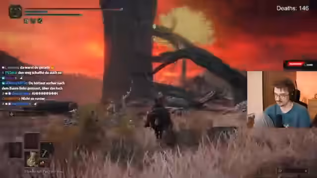 00:10:50Der Gameplay-Teil ist von Frustration geprägt. Der Streamer kämpft sich durch die Scharlachfäule, wird aber immer wieder von den Gegnern und der Umwelt zurückgeworfen, was zu häufigen Toden führt. Er äußert seinen Ärger über die schwierigen Kämpfe und die schiere Wut, die in ihm aufsteigt. Ein besonders nerviger Boss, der Klangperlen-Handelndler, wird intensiv bekämpft, wobei der Streamer sich wiederholt über den Schaden und das Design des Bosses beschwert.