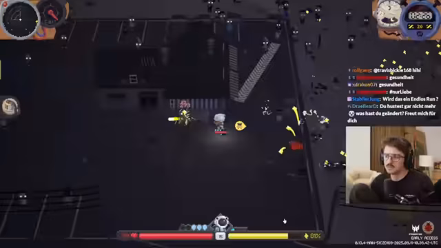 04:16:12Der Streamer bereitet sich auf den Kampf gegen den Endboss vor und plant, nach dem Kampf zu resetten, um in den Endlos-Modus zu gelangen. Es wird spekuliert, ob Angriffsgeschwindigkeit auch Fernkampfwaffen beeinflusst. Der Copyshop wird weiterhin als äußerst effektiv gelobt. Nach dem Sieg über den Endboss werden letzte Itempakete freigeschaltet, was neue Möglichkeiten eröffnet. Es wird überlegt, welche Fähigkeiten verbessert werden sollen, wobei Nahkampfschaden in Betracht gezogen wird. Der Streamer plant, alles zu maximieren, bevor er in den Endlos-Modus geht. Es wird diskutiert, ob der Astronaut erneut gespielt werden soll oder ob ein anderer Build ausprobiert wird. Der Streamer interagiert mit dem Chat und beantwortet Fragen zur Apfeltasche und anderen Spielmechaniken. Revida raidet den Stream und wird herzlich begrüßt. Es wird überlegt, ob eine Shotgun eine sinnvolle Ergänzung zum Build wäre. Der Streamer experimentiert mit verschiedenen Waffen und Add-ons, darunter die Raygun, und plant, einen Raygun-Build zu spielen. Es wird betont, wie wichtig es ist, schnell alles einzusammeln, und es wird festgestellt, dass Kisten nicht stacken.