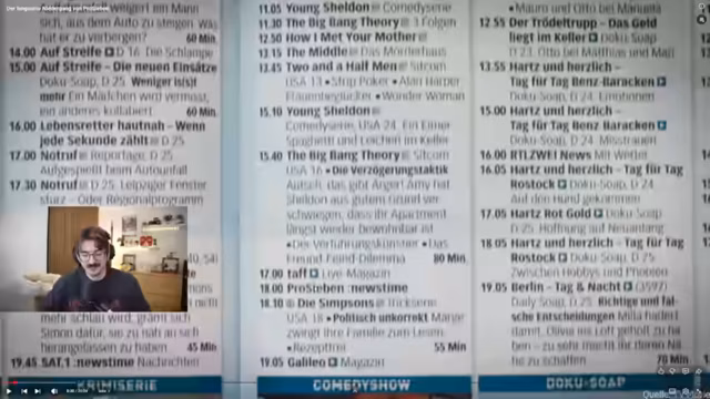 00:17:04Die ständigen Wipe bei TBC führen zu einer Themaveränderung. Der Streamer beginnt, einen Clip über den 'langsamen Niedergang von ProSiebenSat.1' anzuschauen. Er gibt eine Nostalgie-Show über alte Fernsehzeitschriften und die damalige TV-Landschaft. Es werden die Anfänge des Konzerns, die Ära Stefan Raab und Joko & Klaas sowie die Geschäftsmodelle der damaligen Zeit beleuchtet. Der Fokus liegt auf der Zeit, als 20:15 Uhr die Primetime war und Filme durch Werbeunterbrechungen geprägt waren.
