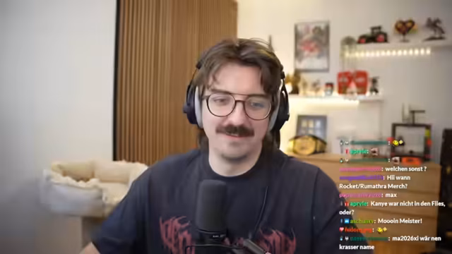 00:03:10Der Stream startet mit einer Begrüßung des Chats und einer Reihe von Zuschauernamen. Der Streamer erwähnt den Song 'Bound to' von Kanye West und macht einen Scherz über eine eventuelle Privatinsolvenz bei Nichterreichen von 40 Subs. Zudem präsentiert er die Idee eines neuen VTuber-Models für seinen Zweitkanal, das als Low-Budget-Muppet-Version von ihm mit Brille und Schnauzer aussehen soll. Die Vorliebe für das neue Modell wird thematisiert, wobei vermutet wird, dass es sich um einen Filter handelt.