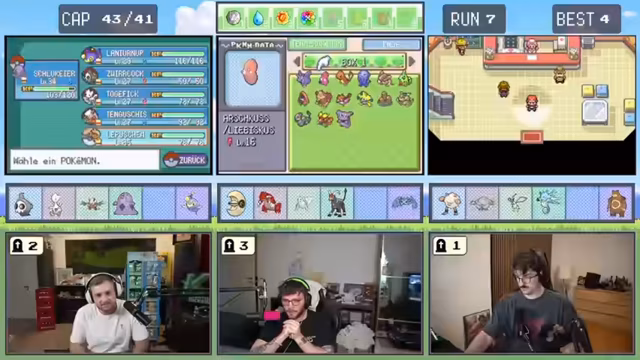 00:30:34Vor dem Eintritt in die Arena stellt der Streamer fest, dass sein Team zu schwach ist, um den Arenaleiter zu besiegen. Infolgedessen entscheidet er sich, eines der gefangenen Pokémon auszutauschen und es zu entwickeln, um die Kampfstärke zu erhöhen. Die Suche nach dem passenden Pokémon und den richtigen Attacken wird zur zentralen Herausforderung. Gleichzeitig muss das Team noch auf das richtige Level gebracht werden.