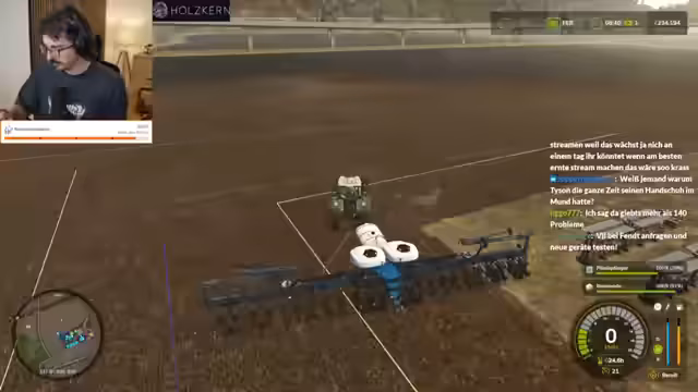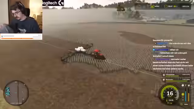 08:19:24Der Streamer diskutiert intensiv über die Spielmechaniken des Landwirtschaftssimulators. Er äußert seine Begeisterung für den Aufbau der Baumwollerntemaschine, die ihm optisch gefällt. Bei der Arbeit auf dem Feld treten technische Probleme auf, ein GPS-fehler führt zu einer falschen Linienführung und zu Frustration über die ungenaue Steuerung. Trotzdem wird die Aufgabe weitergeführt, mit dem Ziel, die Felder effizient zu bestellen und zu ernten.