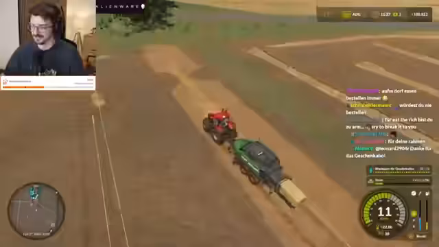 11:42:22Es werden letzte Arbeiten auf den Feldern erledigt, bevor der Streamer eine Pause einlegt. Die Müdigkeit wird thematisiert und Pläne für ein Nickerchen geschmiedet. Es wird erwähnt, dass Max das Spiel verlassen muss, damit der Streamer schlafen kann. Der Anbauzeitraum im Spiel wird reflektiert und die Notwendigkeit der Ernte im November hervorgehoben. Es wird überlegt, ob man das Erntegerät dreimal mieten und drei KI-Helfer einsetzen soll, um die Arbeit zu beschleunigen. Die potenziellen Kosten von 100.000 für die Anstellung von vier KIs werden diskutiert. Der Streamer entscheidet sich, Feld 4 selbst zu bearbeiten und kündigt einen Raid an.
