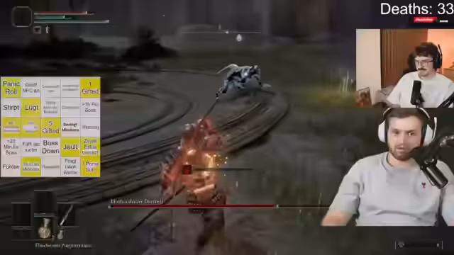 01:44:22Der Streamer setzt seine Bemühungen fort, den Deathcounter in OBS zu integrieren. Er drückt auf durchsuchen und checkt gar nicht, was er macht mit so viel Delay. Er packt sich das dann irgendwo hin. Er fragt, ob er alles schließen kann oder ob es offen bleiben muss. Er glaubt, dass er es geschafft hat. Er möchte, dass alle fünf Minuten gefeiert wird, dass er den Deathcounter hat. Er hat es mit 13.000 Leuten im Call zusammengetüftelt, um das hinzukriegen. Er wünscht viel Erfolg bei seinem Bingo. Er entfernt etwas und macht eine neue Wette. Er gibt zwei Stunden Zeit für das Bingo. Er hat Firegine noch getötet und dann nicht mehr reingefunden. Er hatte keine Zeit und als er es gestreamt hat, hat keiner zugeschaut. Er erklärt, dass das Game zu schwer für ihn war. Er hat alle Souls-Style gespielt, bis auf Demon's Souls. Er erklärt, dass man immer looten muss. Er erklärt, dass es vier oder fünf Bosse gibt. Er erklärt, dass es Herbeirufungsreserven gibt.