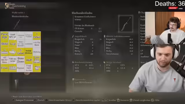 04:03:07Der Streamer erklärt, dass er Max Tipps geben möchte, die dieser nicht selbst herausfinden würde. Er analysiert Max' Kampfstil und gibt Hinweise, wann Angriffe optimal wären. Nach dem Besiegen eines Minibosses mit Mühe und der Nutzung vieler Heiltränke, äußert er sich zufrieden über den Erfolg. Anschließend erklärt er Max die Grundlagen der Waffenattribute und Skalierungen in Elden Ring. Er erläutert, dass Max momentan keinen Schaden verursacht, weil ihm die nötigen Stats für die verwendete Waffe fehlen. Er erklärt, wie Stärke und Geschicklichkeit die Waffen beeinflussen und wie man diese Attribute verbessern kann, um den Schaden zu erhöhen. Der Streamer betont, dass es sich um eine Geschicklichkeitswaffe handelt und dass Max in Geschicklichkeit skillen muss, um mehr Schaden zu verursachen. Er erklärt auch, dass man die Waffe upgraden kann, um die Skalierung zu verbessern. Abschließend gibt er Max den Rat, das Katana zu spielen, bis er sich zwei Level leisten kann.