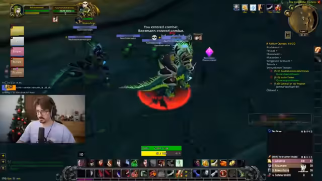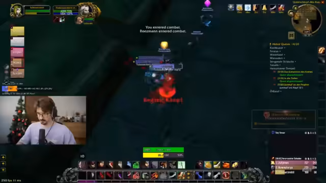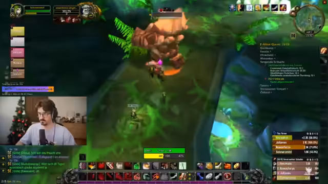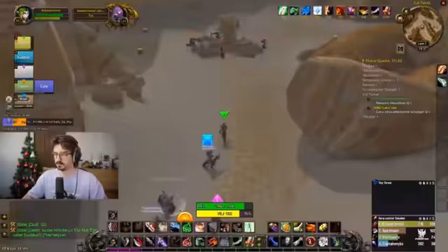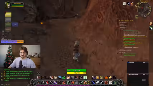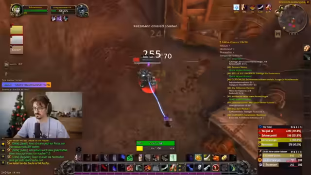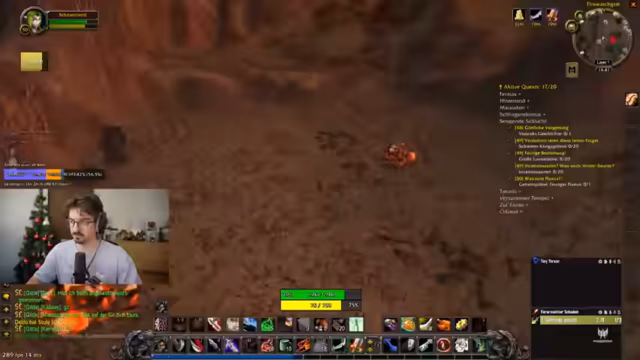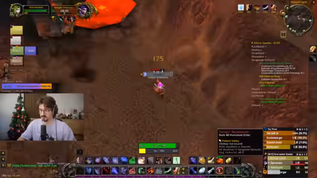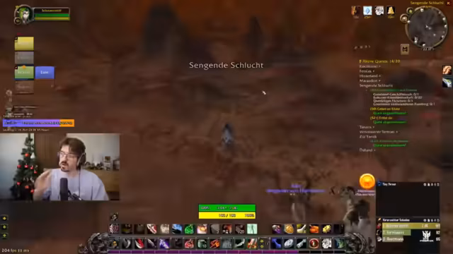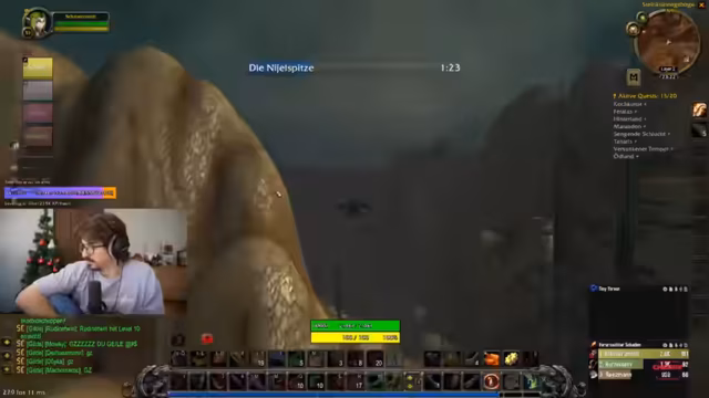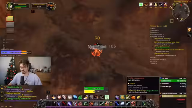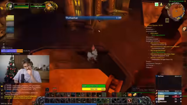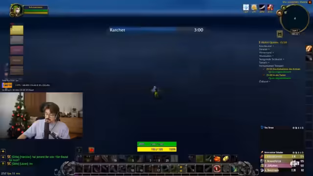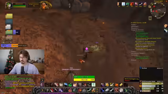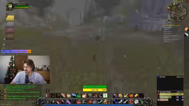 02:39:30Der Streamer erhält Tipps, wie man das Tor ohne Schlüssel öffnen kann, und überlegt, ob sie das Nächstes Mal auf einen zweiten Kanal wechseln sollten, um WoW-Content zu streamen. Er äußert sich über den Winterschultag wegen Glatteis und erinnert sich an ähnliche freie Tage in seiner Schulzeit. Der Streamer plant, den Stream fortzusetzen, um Quests abzugeben, und erwähnt, dass er gerade eine Frau gehört hat, die 'Leute' gesagt hat – was er für real hält. Anschließend wird über das Vorgehen bei Quests diskutiert: Entweder Quests machen oder Mobs töten, wobei der Streamer planvoll durchlaufen möchte, um nicht in eine Quest-Pause zu kommen. Die Session endet mit der Vorbereitung auf die Sengende Schlucht und dem Ziel, Level 52 zu erreichen.