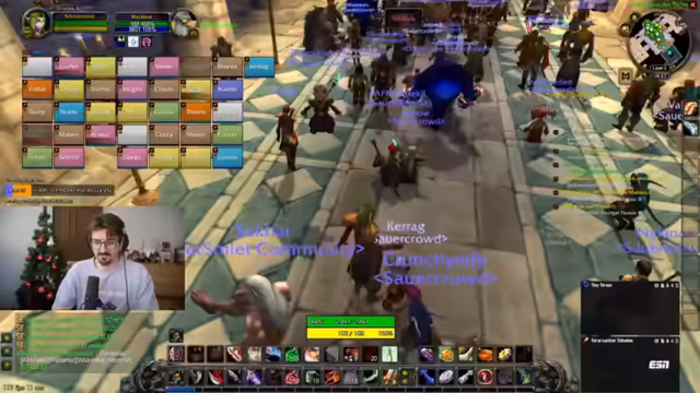 10:17:02Während auf Kevin gewartet wird, folgen Diskussionen über Waffen-Upgrades (z.B. Schwertvergleiche für DPS) und Dungeon-Möglichkeiten wie die Hakenklaue. Server-Auswahl (Classic vs. Jubiläums-Server) und World Buffs werden thematisiert. Der Paladen debattiert kurz über Tanking als Second-Spec bei Tankmangel, lehnt es aber für diesen Dungeon ab.