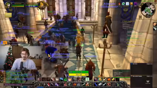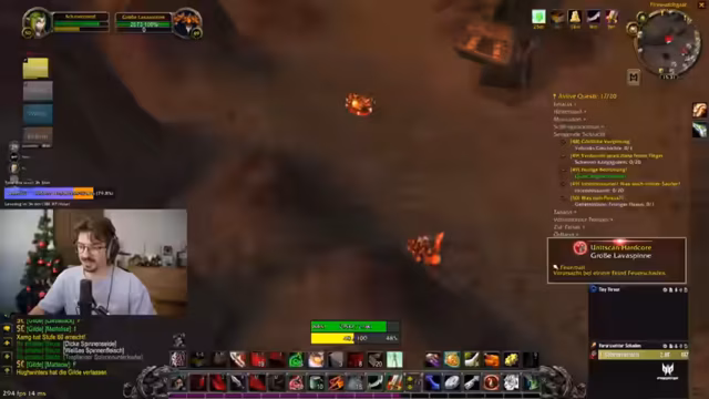 01:43:25Der Streamer plant eine Reise zum Molten Core und bespricht die Vorbereitungen mit seinem Team. Er erwähnt, dass sie durch die brennende Schlucht müssen, und diskutiert, ob sie sich anstellen sollen, um den Dungeon von innen zu sehen. Es gibt eine Unterhaltung mit einem Teammitglied (Ritzmann), das nach dem Molten Core fragt, und der Streamer bestätigt, dass es das Ziel ist. Anschließend wird über die Einbindung eines weiteren Spielers (Rezwan) gesprochen, der gerade bei der Papa-Plat-Gruppe ist, und es wird über die Schwierigkeiten diskutiert, Leute für Dungeon-Runs zu gewinnen, da diese keine EP oder Items bekommen. Der Streamer plant, nach Kloster und Hügel (oder Kral) zu reiten, um Quests zu erledigen.