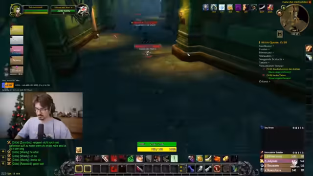 09:40:17Das Team plant die Fortsetzung der Quests, insbesondere den Eintritt in den Dungeon Maraudon. Es werden Warnungen vor der Princess ausgesprochen, die um die Ecke kommen könnte und einen 'Arschbumms' für die Gruppe bedeutet. Gleichzeitig wird die Aufteilung von Verantwortlichkeiten besprochen: Der Kutscher wird nach einem früheren Setback vorsichtig bei der Tankschaft in Blackrock Depths begutachtet, während ein anderer Spieler bereits ausreichend Ausrüstung für Raids besitzt.