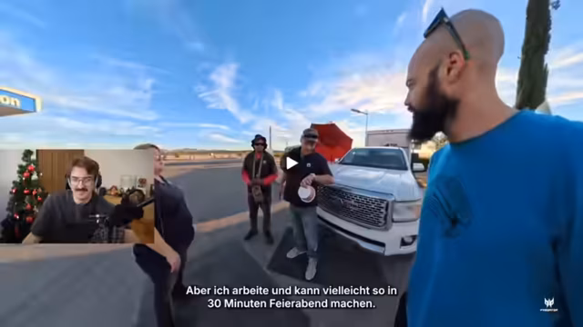 00:38:55Der Stream wechselt zur Reaction auf Dave's Paramotor-Video, das eine Reise durch die USA zeigt. Der Flug beginnt unter optimalen Bedingungen in der Mojave-Wüste, mit Erklärungen zu Flugparametern wie Geschwindigkeit, Spritverbrauch und Routenplanung. Dave und sein Begleiter Marlon betonen die Bedeutung von Wetterbedingungen und Sicherheitsaspekten, einschließlich des Rettungsschirms. Der Streamer kommentiert die beeindruckenden Aufnahmen und die American-Experience, während die Gruppe versucht, eine Tankstelle zu erreichen.