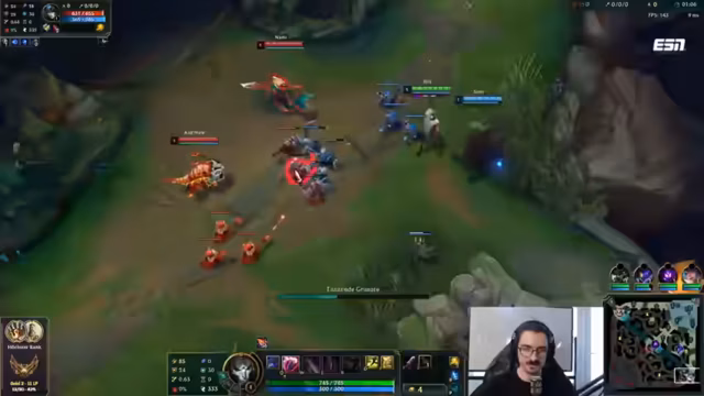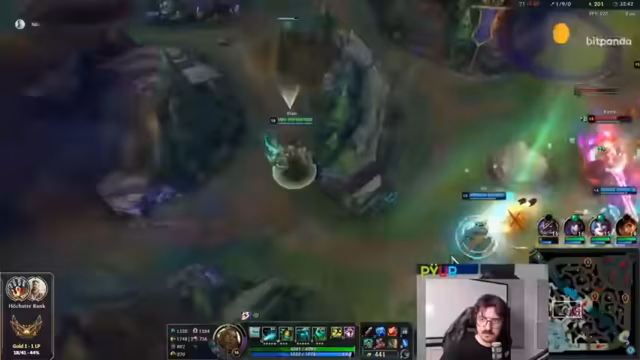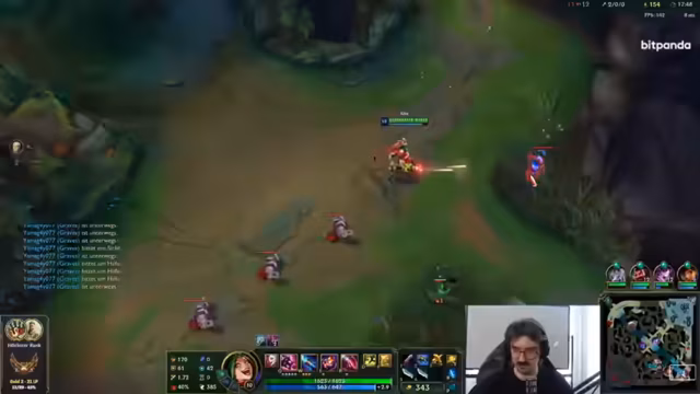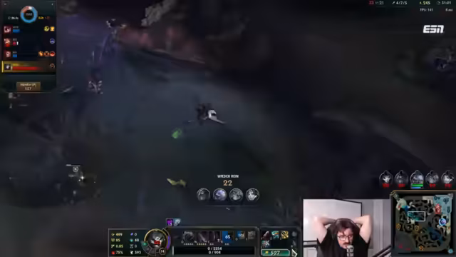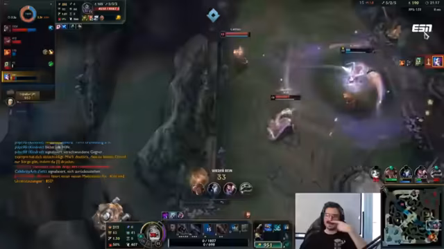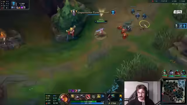 10:19:28Ein unerwarteter Turnaround ereignet sich, als der Streamer mit Syrah einen erfolgreichen Kill auf dem gegnerischen Annie landen kann und anschließend drei Kills in einem Teamfight holt. Dies gibt dem neuen Momentum und die Hoffnung auf einen Sieg. Doch die Freude wird abrupt beendet, als die Facecam des Streamers wegen Überhitzung komplett ausfällt, was ihn zu einem Zuschauer des restlichen Spiels macht. Das Team ist dadurch unterbesetzt und hat keine Kontrolle mehr über das Spielgeschehen.