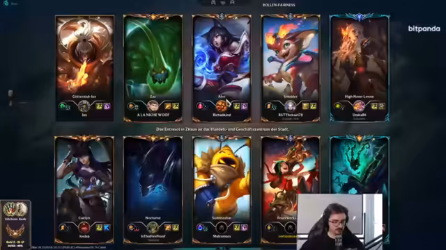 08:43:27Die Wahl des Supports Rakan wird als Fehlentscheidung angesehen, da ein früherer Pick mehr Spaß- und Hand-in-Hand-Potenzial gehabt hätte. Ein erfolgreiches Teamfight gegen einen Amo-Buglap wird gefeiert, bei dem ein Kha'Zix entscheidend in das Geschehen eingreift. Einige Champion-Namen werden humorvoll missverstanden, was zu absurden Vergleichen führt. Später kritisiert der Streamer das spielerische Niveau eines Akshans mit 0-7-0 und beschreibt das Matchmaking als geisteskrank, da Silberspieler gegen ehemalige Emerald-Spieler antreten und das Spiel wie eine E-Sport-Übertragung anfühle, anstatt davon beeinflusst zu werden.