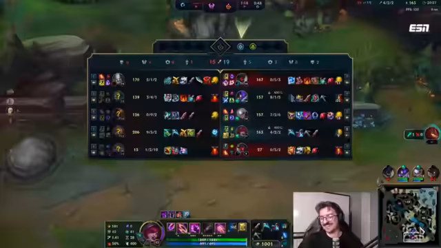 14:19:36Obwohl das Team im späten Spiel weit überlegen ist, führt eine unkoordinierte Aktion und der fehlende Ward im Gegnerjungle zum Verlust des Barons und damit des Spiels. Trotz der Niederlage blicken die Streamer auf den Gesamt-Climb der letzten 48 Stunden zurück, bei denen sie 18 Siege erzielt haben. Sie analysieren ihre KDA-Stats und schließen, dass sie nun das Niveau von Smurfs erreicht haben und gegen Emerald-Spieler antreten.