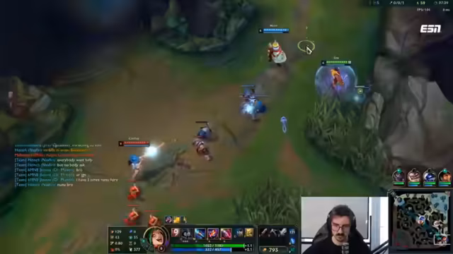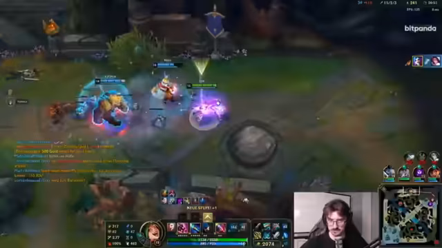 11:41:06Das Gespräch konzentriert sich auf das Handling gegnerischer Mechaniken wie Portal von der Aurora und den Kreis eines Champions, aus dem man selbst, aber nicht der Gegner, entweichen kann. Es kommt zu einem massiven Teamfight, bei dem der Shen eine entscheidende Ultimaltivation einsetzt. Die Streamer sind sich uneinig über die Taktik, eine Katharina aufzuhalten, und sie verlieren den Kampf, da sie keine Frontline besitzen, um dem Nunu-Schneeball standzuhalten.