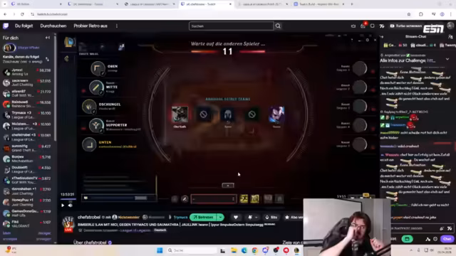 01:29:05Der Stream beginnt mit einer Diskussion über die Chancen im aktuellen Spiel. Strobel wird vorgeworfen, in seiner Masterarbeit TikTok-Quellen genutzt zu haben. Man spricht über die Winrate, die bei 10% beginnen soll, aber langsam auf 50% steigen müsse. Es kommt zu einem Rollentausch zwischen Spielern, da sich die ursprüngliche Pick-Phase als suboptimal herausgestellt hat. Max wird für seine aggressive Spielweise im letzten Kampf gelobt, da er vier Gegner automatisch getroffen hat, während Kritik an einem falschen Trade geäußert wird.