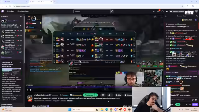 13:38:13Der Streamer Chef Strobel kritisiert die Picks des eigenen Teams, insbesondere einen Illaoi-Spieler, der die Lane gewinnt, aber das Team durch fehlende Teamfight-Fähigkeiten verliert. Dies führt zu Diskussionen über die MMR und der Taktik, Games zu dodgen, um ein besseres Team zu bekommen. Die Gegner werden als extrem starke Smurfs identifiziert, die das Spiel dominieren.