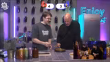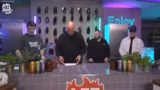01:00:05Das Chat-Voting fällt auf ein Handicap, wobei die Moderatoren die Optionen vorstellen: kochen mit nur einer Hand, Tragen von Gewichtsmanschetten oder das Tragen einer Prismenbrille. Nach erneuter Abstimmung durch den Chat erhält Montanablack die Aufgabe, mit der Prismenbrille zu kochen. Diese Brille erschwert ihm die Sicht, da sie Bilder an die Seiten des Gesichtes projiziert und ihm das Lesen des Rezeptes und die präzise Arbeit stark erschwert.