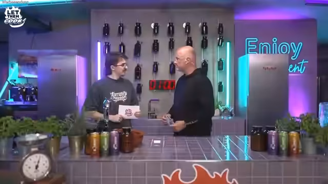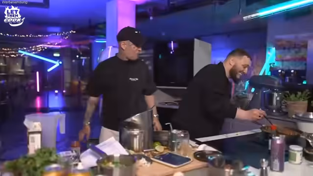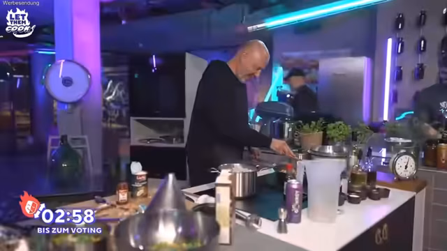00:14:45Der Stream startet mit der Begrüßung der Zuschauer und der Vorstellung des sechsten Streamings der Reihe 'Let them cook'. Frank Rosin begrüßt seine Gäste Montanablack und Abugoku9999 und erläutert das Format der Kochshow, bei dem die beiden Gäste gegeneinander dasselbe Rezept zubereiten. Entscheidend ist, dass der Live-Chat am Anfang über das Rezept abstimmen darf. Außerdem wird der Kooperationspartner Joyn erwähnt, der die Produktion des Streams ermöglicht, und die drei zur Auswahl stehenden Rezepte (thailändisches Curry, marokkanischer Gemüseeintopf, indisches Kichererbsencurry) vorgestellt.