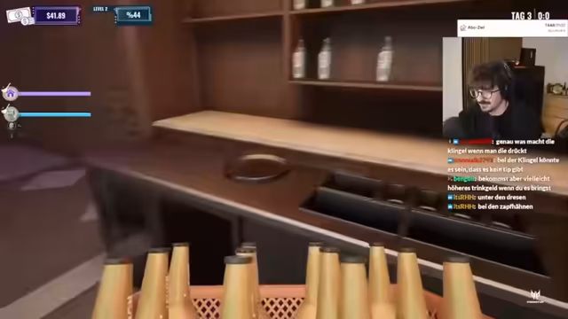 05:36:42Der Streamer startet mit der Einrichtung seines Nachtclubs. Er kauft Drinks wie Bier, Gin, Orangen, Eis und Limettensaft ein, um eine funktionierende Bar zu gewährleisten. Der Fokus liegt darauf, die Getränke ordnungsgemäß zu lagern und die Bar für den Betrieb vorzubereiten, wobei anfangs einige Unsicherheit über die Handhabung der Zapfanlage und der Lagerung herrscht.