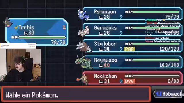 02:04:58Der Stream ist dem Level 200 Ziel immer näher gekommen und hat nun mehrere starke Pokémon wie Stalobor in seinem Team. Er nutzt ein Item, um die Kosten für die Entwicklung von Rayquaza zu senken. Nach einem Kampf mit der Arenaleiterin Zinnia, bei der er dank seiner starken Pokémon gewinnt, ist er nun kurz davor, sein Ziel zu erreichen und sucht nach dem nächsten Arenaleiter.