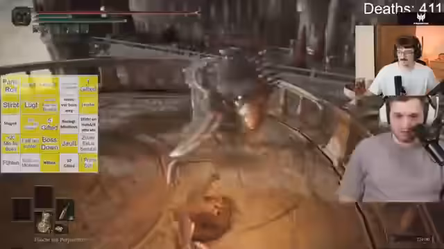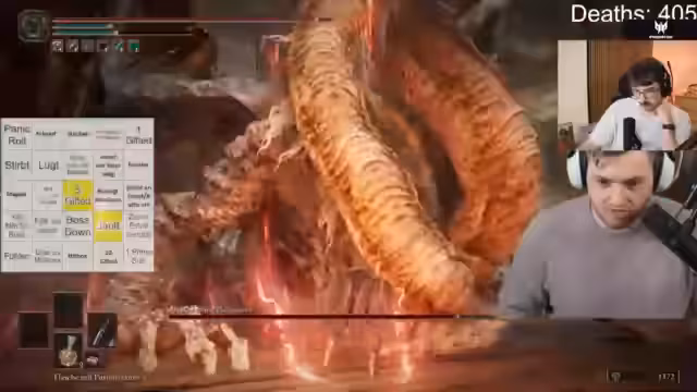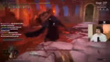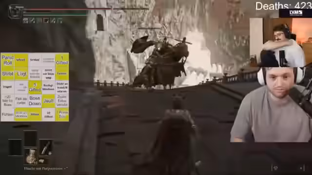 05:52:28Während des Kampfes gegen Malienia erwähnt der Streamer, dass er auch den Stream von Max, einem anderen Spieler, beobachtet. Max kämpft ebenfalls gegen einen schwierigen Boss, den Drachenlord Palsidusax. Der Streamer schaut sich Maxs Kampftaktiken an, gibt aber keinen Backseat-Gaming und wartet ab. Er beschreibt den Drachenlord als episch und frustriert gleichzeitig über den langen und nervigen Weg, den Max zurücklegen muss, wenn er stirbt.