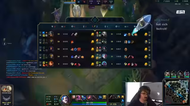 09:24:45Nach einer enttäuschenden Niederlage wendet sich der Fokus auf die Analyse des Spiels. Der Streamer identifiziert persönliche Fehler, die zu dem spielerischen Rückstand führten, und beschreibt die unglücklichen Entscheidungen im Teamfight. Die Kommunikation im Chat wird thematisiert und die Performance des Gegners als herausragend bewertet, was die eigene Niederlage rechtfertigt.