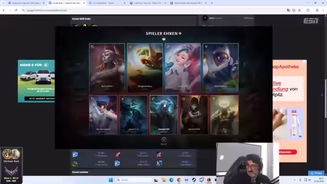00:19:05Die ersten Games gestalten sich deutlich schwieriger, als erwartet. Besonders bemerkenswert ist ein Gegner im ersten Spiel, der mit einem Volibear eine 35-0 Statistik erreicht und das Spiel quasi im Alleingang gewinnt. Das gegnerische Team ist in einer Full-Platin-Lobby, was für das Team um Romatra und Max, das in Silber startet, eine große Herausforderung darstellt. Niki's Team verliert sein erstes Game ebenfalls deutlich, Chef Strobel ist dabei 0-12. Die hohen MMR-Werte durch viele normale Siege vor der Challenge sind eine direkte Ursache für diese unbalancierten Lobbies.