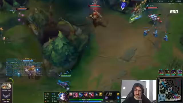 10:39:03In der Anfangsphase des Spiels gelingt es, mehrere gegnerische Backport-Angriffe erfolgreich abzuwehren und dabei wichtige Kills zu erzielen. Besonders erwähnenswert ist der gute Umgang mit dem Champion Nafiri, dessen Ultimativenfähigkeit genutzt wird, um gegnerische Teamschaden zu maximieren und Gegner isoliert auszuschalten. Nachdem ein Startfehler mit der Ultimativenfähigkeit des Champions gemacht wurde, stabilisiert sich das Spiel und der Spieler verzeichnet einen deutlichen Damage-Output und hebt den erfolgreichen Einsatz von Counter-Strategien hervor.