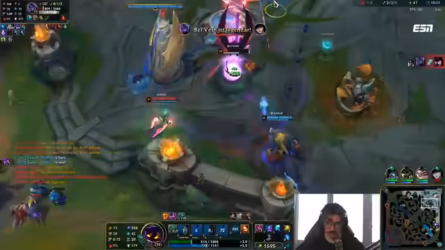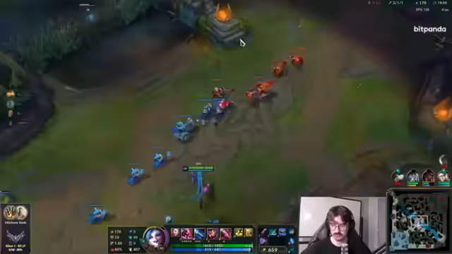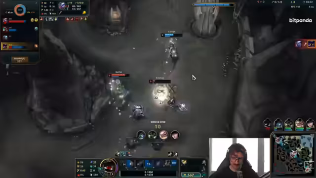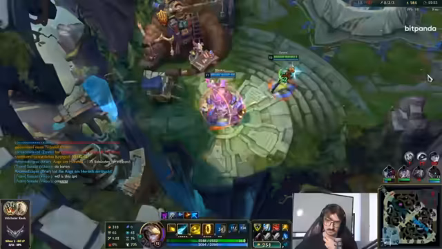 02:40:15Das Stream-Team hat ein Clear der Gegner-Minions in der Lane geschafft. Bei der Diskussion der Champions wird erwähnt, dass Ezreal nicht versteht, wie das Minion-Sharing funktioniert. Außerdem tauchen Begriffe wie Struddle und Voidling auf, was auf Champions wie Cho'Gath und Malzahar hindeutet. Die Analyse der gegnerischen Picks zeigt eine Akali gegen Lissandra auf der Mid-Lane, während eine Shyvana auf der Top-Lane als "Full Boxed" beschrieben wird.