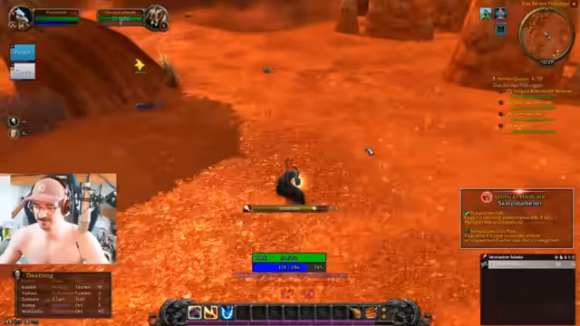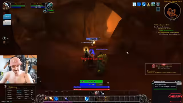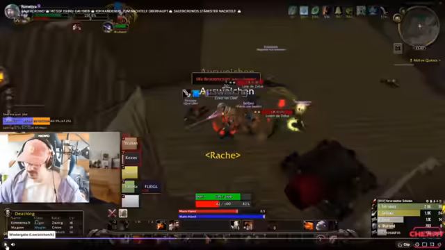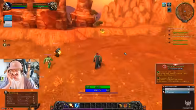 06:13:11Die Gruppe startet einen Hardcore-Dungeon in World of Warcraft Classic (Ragefire Chasm) mit selbst auferlegten Einschränkungen wie fehlenden Fähigkeiten und schlechter Ausrüstung. Sie diskutieren Strategien, scheitern mehrfach an Mobs und analysieren ihre Fehler. Besonders der Mangel an Frostnova und Sheep-Zaubern führt zu Problemen. Trotz koordinierter Versuche stirbt die Gruppe schließlich, was zu einer kontroversen Schuldzuweisung unter den Spielern führt.
