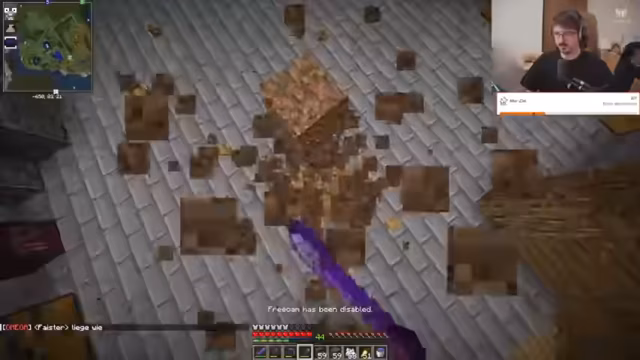 03:33:27Der Streamer kämpft mit dem Bau einer Struktur, die nicht wie geplant zusammenkommt, was auf ein Verzählen hindeutet. Er scherzt über die Möglichkeit, den Hof anzuzünden, was jedoch aufgrund des Safe Spaces nicht möglich ist. Es wird eine mögliche Teilnahme an Hugo SMP erwähnt, wo man Möbelstücke mit Echtgeld kaufen kann. Der Streamer plant scherzhaft, dort Möbelstücke zu stehlen und Basen auszurauben, um als „Instant Top Griefer“ aufzutreten. Er freut sich über positive Rückmeldungen zu seiner Entwicklung im Streaming. Die Diskussion kehrt zu den Bauarbeiten zurück, wobei er viele Treppen benötigt und einen Teil der Struktur abreißen muss. Er erwähnt, dass Eisenfarmen in der Schmiede nützlich gewesen wären.