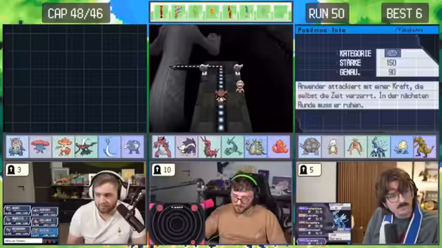 00:19:23Das Hauptthema wechselt zur laufenden Pokémon SoulLink Challenge. Der Streamer erklärt, wie er für verschiedene Spiele eigene Moderatoren, sogenannte Mods, hat, die auf ihre jeweiligen Bereiche spezialisiert sind. Für die Pokémon-Herausforderung ist das Mod 'fucking Pokémon Nils' zuständig. Die aktuelle Situation kritisiert er, da sein Team durch wiederholte Kämpfe unterlevelt ist. Alle seine Lead-Pokémon sind gestorben, was das Leveln aller Teammitglieder auf 37 erschwert. Das Ziel ist nun, schnell zur Arena zu gelangen, um die Pokémon auf Level 48 zu bringen und so einen Levelvorteil zu erlangen.
