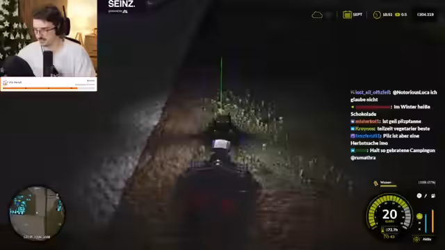 00:11:44Die Ernte erreicht einen kritischen Punkt, als der Streamer Max im Stream auftaucht. Durch eine vorherige Abstimmung haben alle Zuschauer dafür gestimmt, dass Max in Landwirtschafts Simulator statt in FitnaCraft weiterspielt. Der unerwartete Großauftrag bringt die bestehende Ernte-KI-Flotte an ihre Grenzen. Max muss sofort helfen, um die Ernte vor dem Verfall zu retten, und wird mitten ins Geschehen katapultiert.